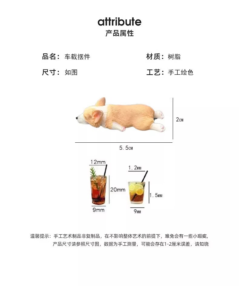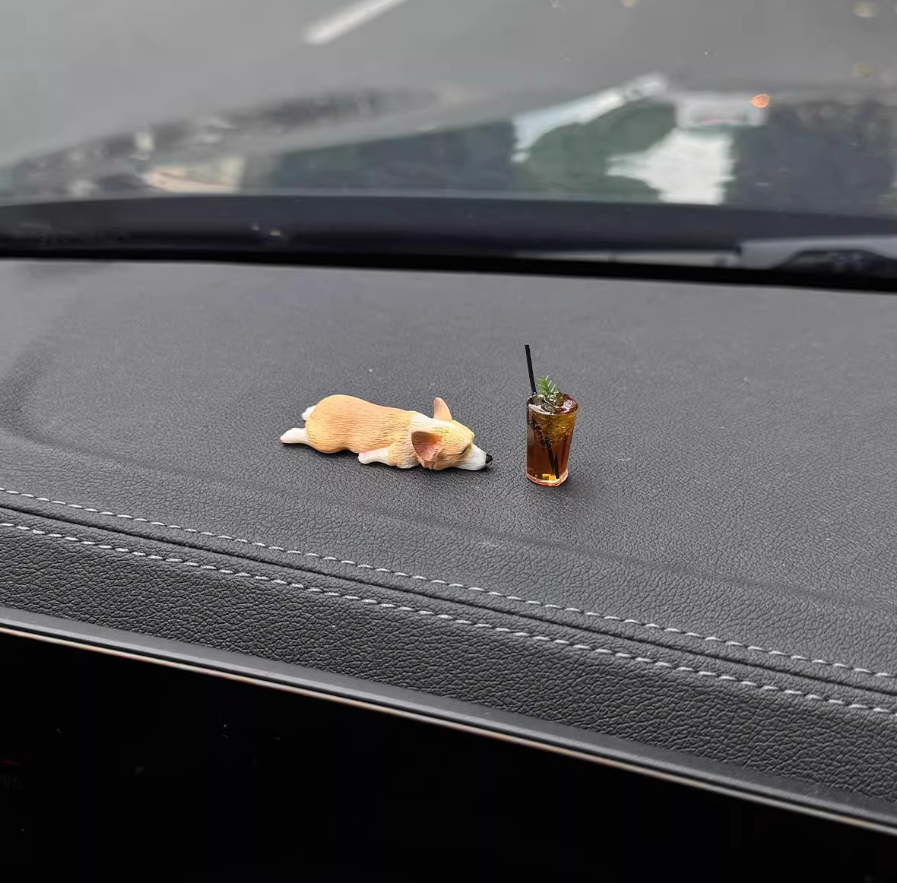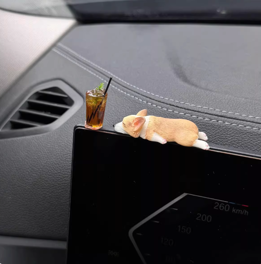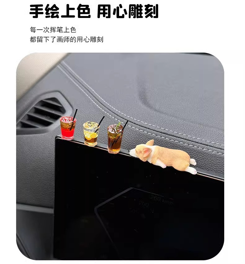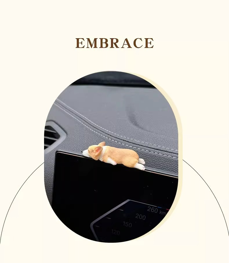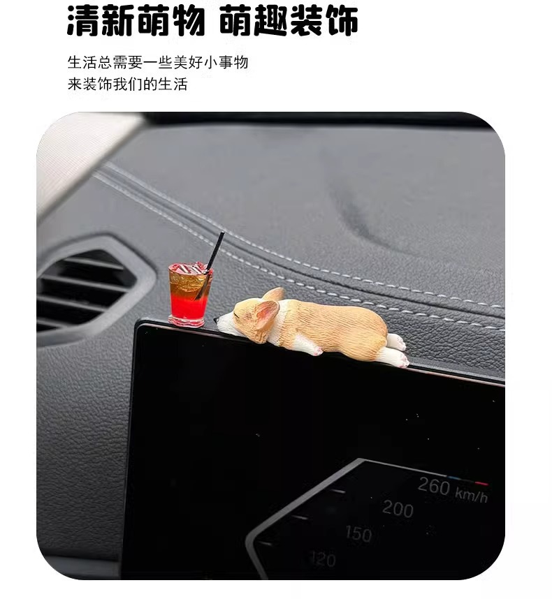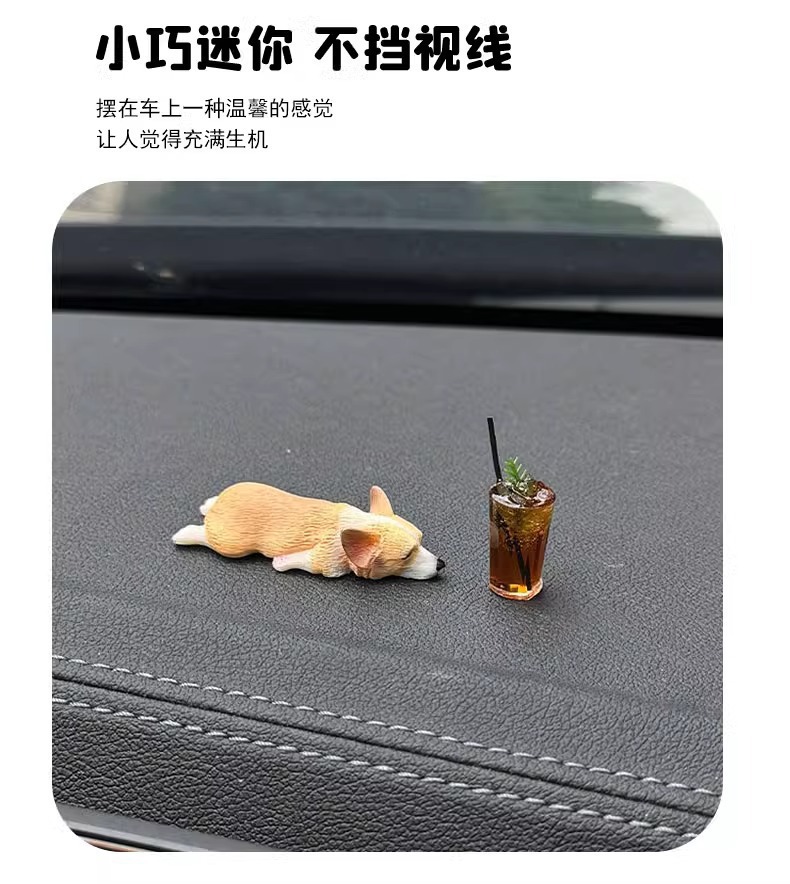 迷你睡姿柯基汽车摆件创意车内中控台装饰品仿真可爱树脂小狗
