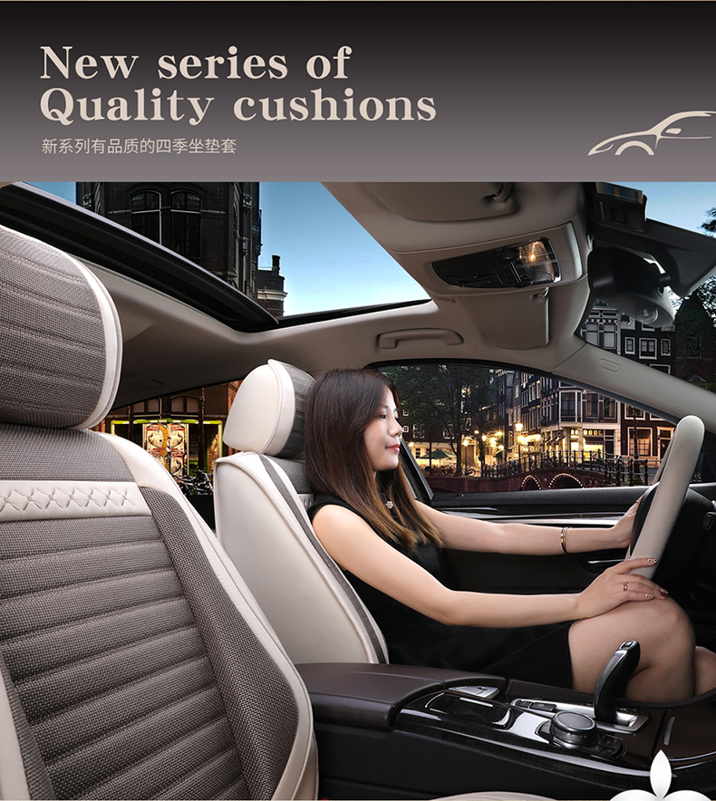 汽车坐垫夏季亚麻座套四季通用全包围棉麻布艺座垫卡通专用座椅套