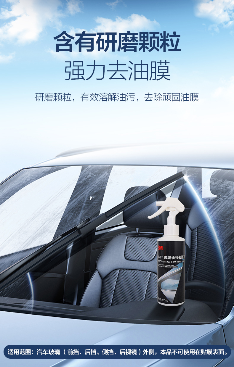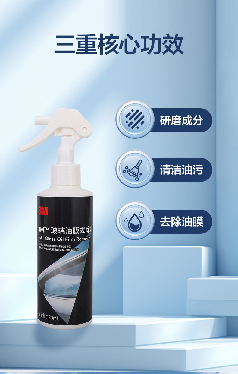 3M去油膜清洗剂汽车专用强效去污前挡风玻璃车窗清洁剂油膜去除剂