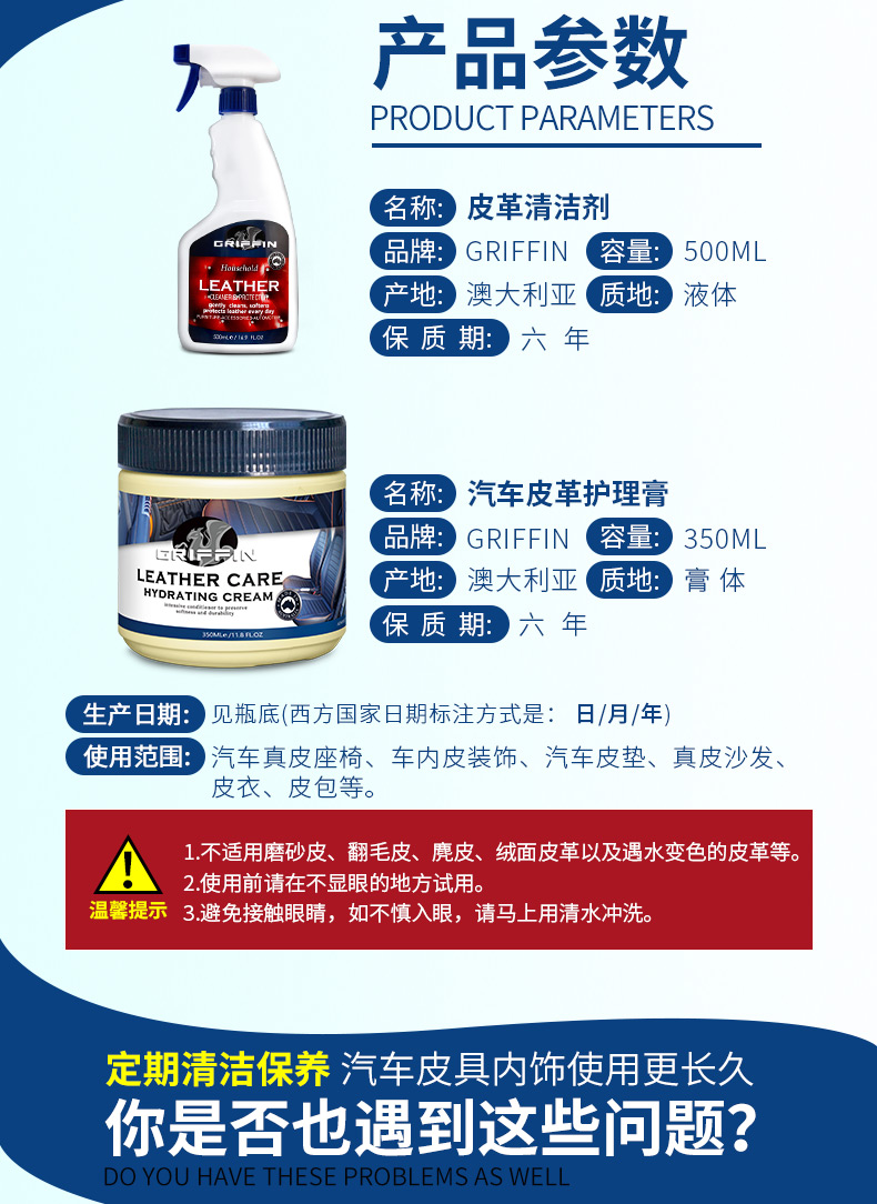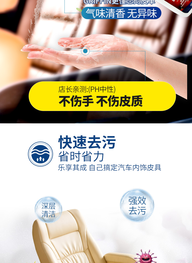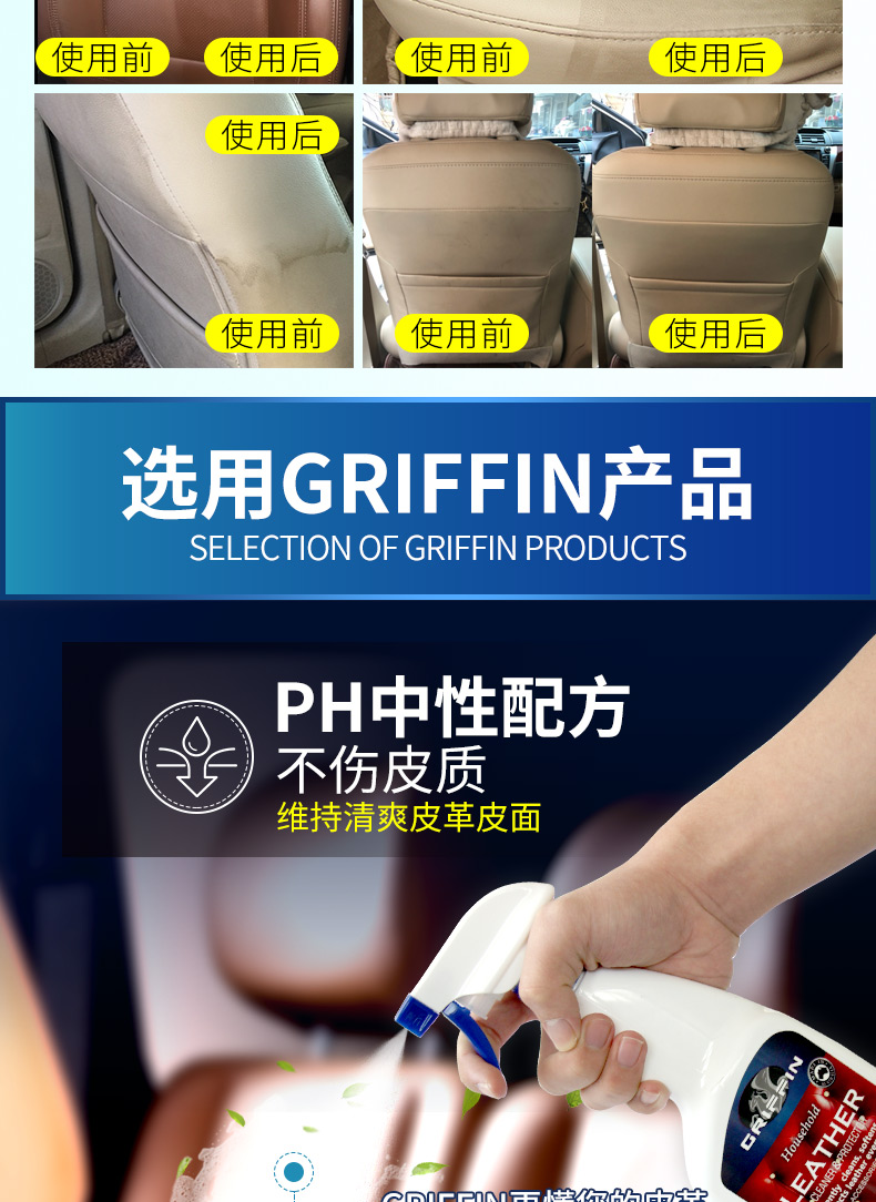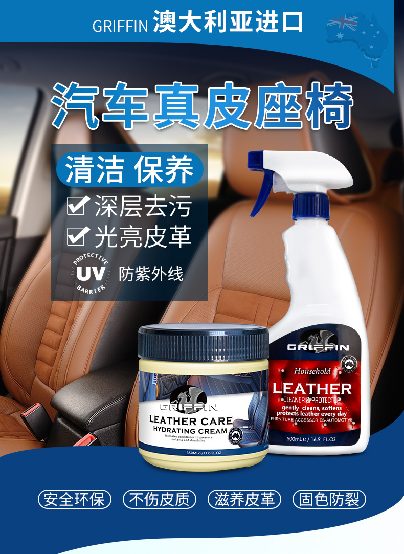 澳洲GRIFFIN汽车真皮座椅保养剂 皮革清洁护理油套餐内饰用品清洗套装