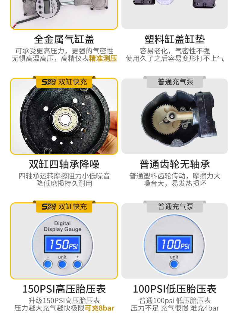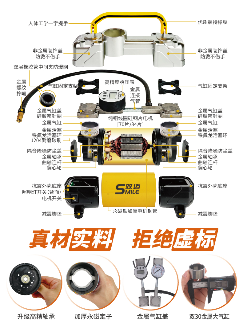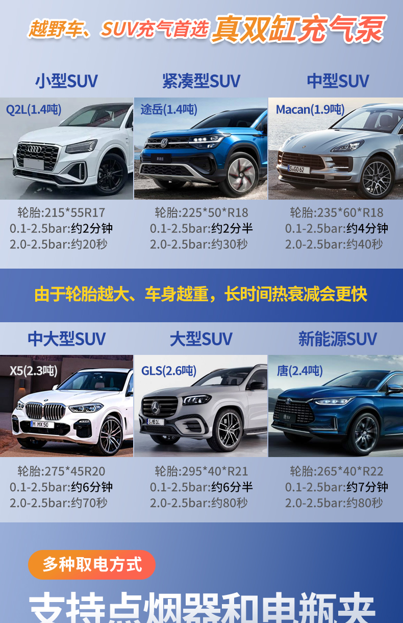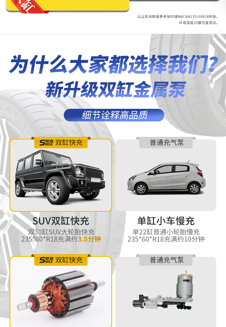双迈车载充气泵便携式车用轮胎双缸高压大功率电动汽车打气泵12V