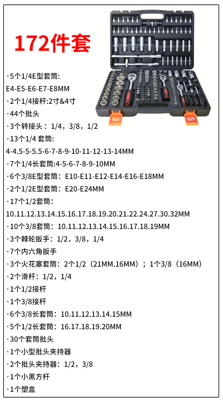 172件套汽修套筒组套工具大飞中飞小飞汽车维修工具套装厂家直销